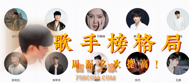 01 首先还是说笔者比较关注的一位歌手,他就是周深。 上一次撰写文章的时候,周深的排名还是在第十一位。 如今再看,周深的排名已经是第八位了。 这里多说一句,有粉丝给我私信说周深的排名很不稳定。 其实在笔者看来,周深的排名是非常稳定的,基本就在7-15。 这个排名是差还是好?在笔者看来,这个数据是非常好的。 各位观察一下Q音歌手榜的变动就会发现,很多歌手往往只是昙花一现然后就迅速走低。 这类歌手是非常不稳定的,因为他们往往只有着一两首突然爆红的曲目,而缺乏了兜底作品和持续输出。 周深现如今的音源成绩和资源是让很多歌手都羡慕的,现在的他,名次能够上升,是比较依赖OST的。
