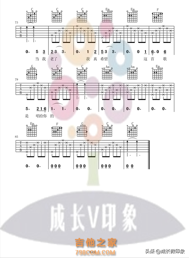 《当你老了》是一首由歌手赵照对爱尔兰诗人威廉·勃特勒·叶芝的同名诗作改编而成的歌曲。这首歌曲在综艺节目“中国好歌曲”中被刘欢老师大赞,同时也有多位歌手演唱过这首歌,如莫文蔚、李健等。这首歌用简单的语言描绘出了人们老了之后的情景、感受。这首歌曲也是吉他爱好者们经常选弹的一首歌曲,简单效果又好。今天给大家分享一下这首歌曲的吉他谱,制谱不易,希望大家点个赞哦。 【当你老了】弹唱示范视频点击