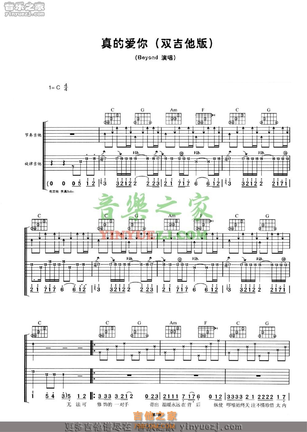 本章为“Beyond《真的爱你》吉他谱 ”信息,了解更多高清无码版本吉他谱、尤克里里、教学视频等信息,请关注吉他之家,我们会持续更新。
