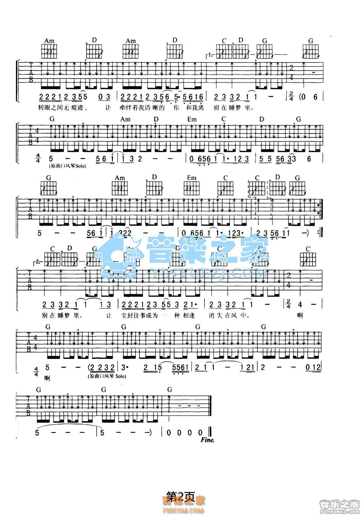 本章为“G调版伍佰《随风而去》吉他弹唱六线谱 ”信息,了解更多高清无码版本吉他谱、尤克里里、教学视频等信息,请关注吉他之家,我们会持续更新。