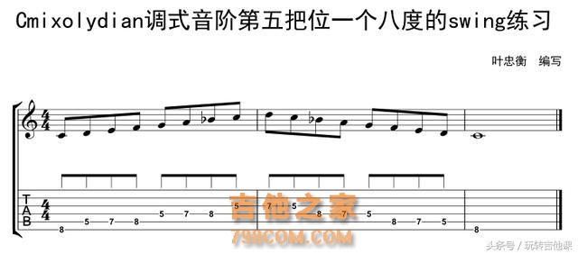 可能你会觉得这不是自相矛盾吗?又说自学吉他,又说要找个好老师!说实话,好的老师会给你一个好的引导,好的系统,通俗点说就是有个好的方向!其实你自己才是司机,所以,你说是不是找了个好的老师也相当于自学!有了好的方向之后,能不能成为好-的-司-机关键还是靠自己~~~ ![]() 图片来自网络 能发现好的吉他老师,也是要自己有火眼金睛,不过,真正做起来的方法就是——多去试,总比你自学走弯路花的时间要少的多得多得多!所以,你可以和我一起,先把真基本功拿下来,你自然会明白,怎么去发现一个好的老师! 来吧,我们今天要说的是Cmixolydian调式音阶第五把位的完整基本功练习,先来看指法图: ![]() 原创图片 这个跟我们所熟悉的MI型指法一样,但是不要混淆,他们的根音与音程关系不一样,这个是关键!一定要谨慎! 音阶练习还是那两个套路: 第一个套路 —— 用swing和三连音做一个八度的恋习,从根音走到9音再下行!如谱:![]() 原创吉他谱 ![]() 原创吉他谱 第二个套路:混合八分swing与三连音![]() 原创吉他谱 再来看看琶音指法图: ![]() 原创图片 琶音练习还是那两种方式:一个八度和两个八度的先来看一个八度的方式: ![]() 原创吉他谱 ![]() 原创吉他谱 再来看看两个八度: ![]() 原创吉他谱 一个瞎 BBCDEFG的视频,不是为了教你,只是想把你叫醒!你说醒了继续爬格子,随你~~~喔哈哈哈哈哈~~~~ |