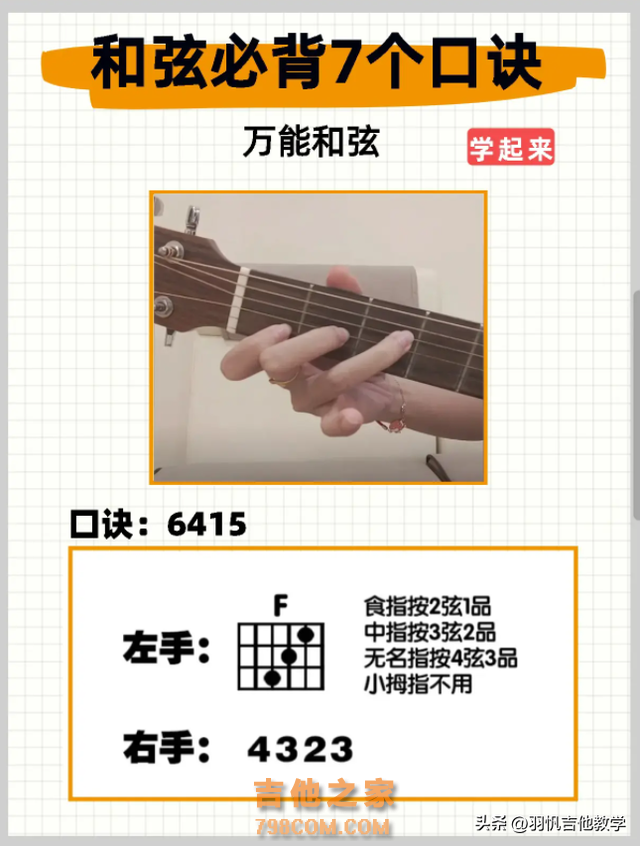 你的吉他会很牛学吉他正确顺序#吉他教学入门零基础 #吉他调音怎么调 #吉他谱子怎么看# 和弦必背7个口诀,都学起来吧。