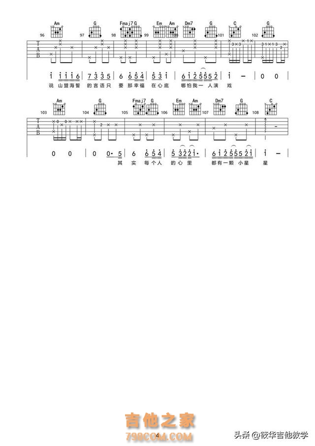 结语《小星星》是一首非常适合初学者的曲目,通过这首歌的练习,你可以掌握基本的和弦转换、节奏控制等技巧。记住,练习时要保持耐心,享受音乐带来的愉快。祝你在吉他学习的道路上越走越远!