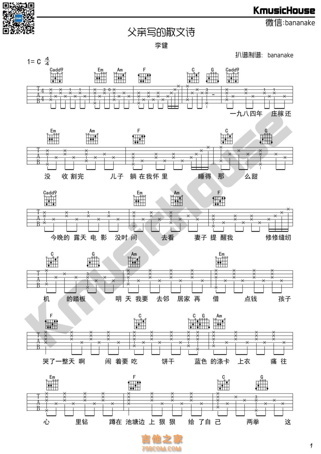 本章为“李健《父亲写的散文诗》吉他 ”信息,了解更多高清无码版本吉他谱、尤克里里、教学视频等信息,请关注吉他之家,我们会持续更新。