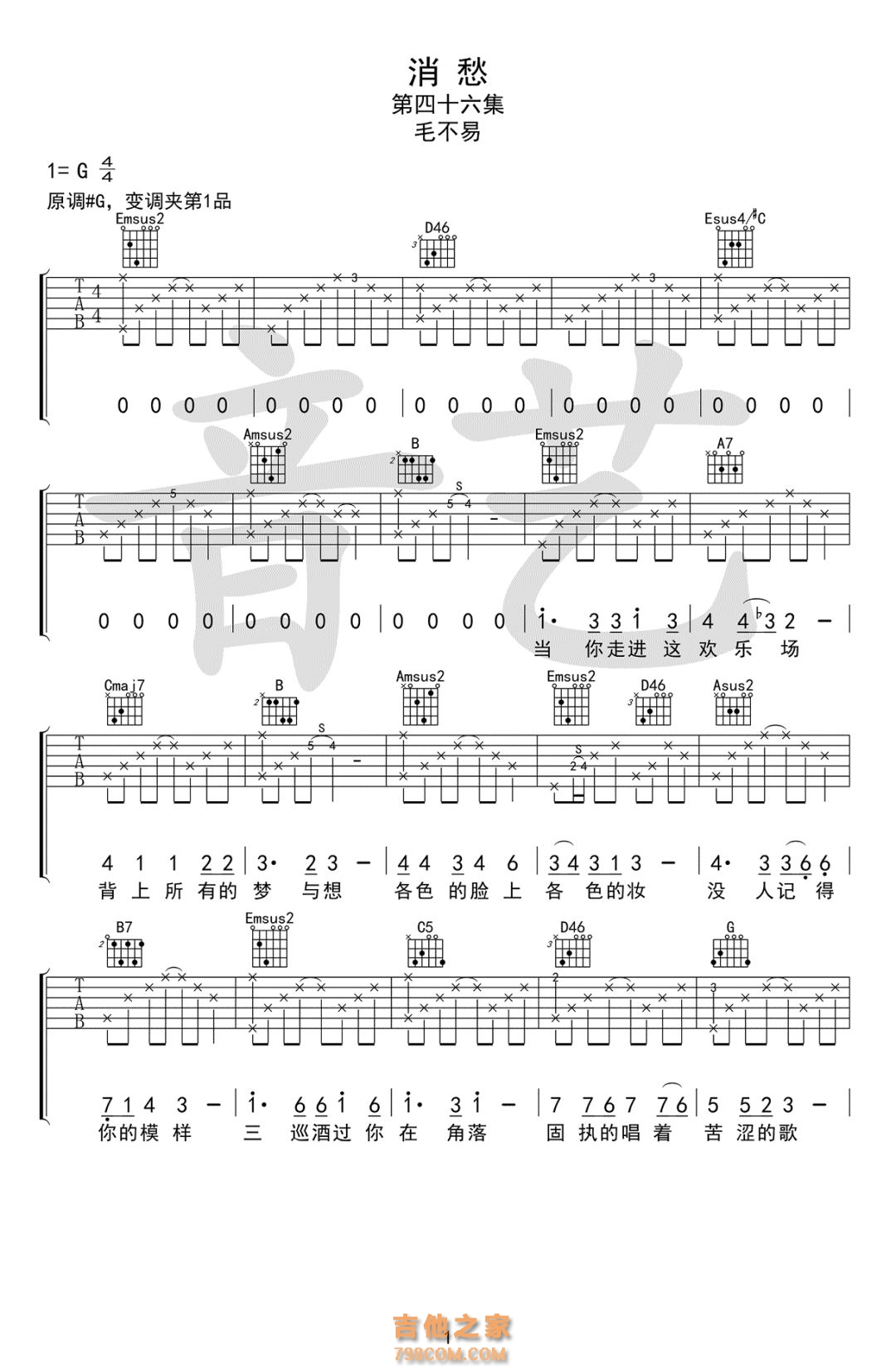 本章为“【吉他谱】李晓东《消愁》 ”信息,了解更多高清无码版本吉他谱、尤克里里、教学视频等信息,请关注吉他之家,我们会持续更新。