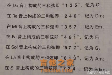 一:C大调的顺阶和弦 ![]() 和弦是在三度音的原理上发展起来的。现在让我们以音阶上各音为根音来构造三和弦: ![]() 根据以前的知识,C,F,G三个和弦的根音到三音为大三度,三音到五音为小三度,是大三和弦,而Dm,Em,Am的根音到三音为小三度,三音到五音为大三度,是小三和弦,而 Bdim的根音到三音,三音到五音都是小三度,是个减三和弦(有关知识我们后面再讲)。这七个和弦建立在C调的自然音阶基础上,被称为“顺阶和弦”。它们也是C大调中最常用的和弦。 ![]() 二:和弦图解 ![]() F和弦需用食指同时按住第(1)弦和第(2)弦的第一品(俗称“小横按”),这要求手指有较大的力量。而G和弦则用到了左手的小指,小指的力量本来就比较弱,加上这个指法还要求小指与无名指之间有较好的延展性,所以这个和弦对初学者来说也不太容易。初学吉他的朋友往往头几天兴趣盎然,但没过一阵就有不少人退缩了,F和弦与G和弦便是横在众人面前的一道坎。 当然,对于指力太弱的人或是吉他班里的女同学,如果苦练数天后面对这两个和弦还是力不从心,也不是没有“投机取巧”的办法,这就是:F和弦可以用指法简单的Fmaj7替代,Fmaj7读为“F大七”,它在C大调中常被用来替代F,指法也较简单。 ![]() 至于G和弦,也可以换一种指法来按,如上图,必须告诉大家,以上按法并不能完全替代原有指法,特别是F和Fmaj7,它们本来就是两个不同的和弦。“变招”是初学阶段的权宜之计。朋友们一定要把标准指法练好,只有这样,今后面对更加艰深的技巧时我们才能无所畏惧。 |
