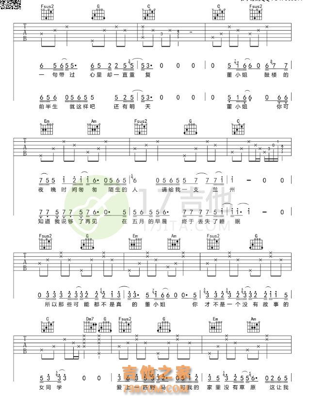 本章为“董小姐 | 吉他谱 ”信息,了解更多高清无码版本吉他谱、尤克里里、教学视频等信息,请关注吉他之家,我们会持续更新。