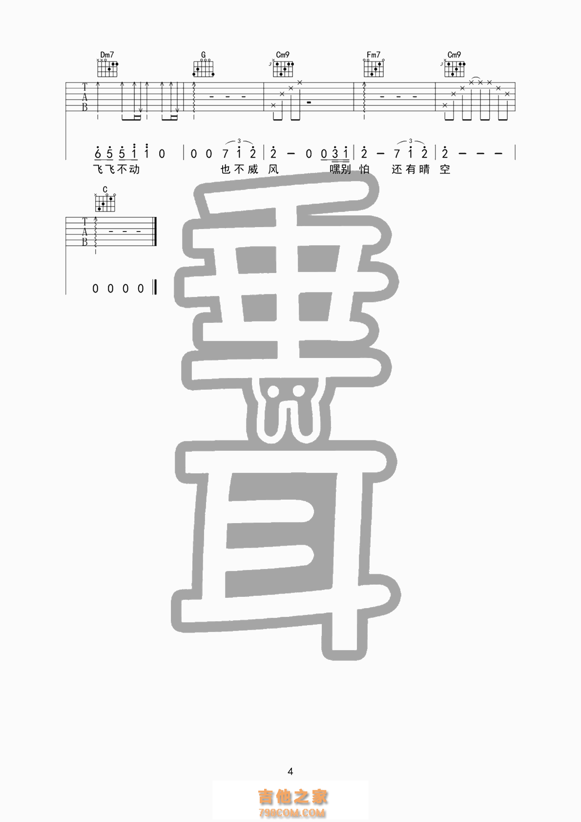 本章为“陈奕迅《披风》吉他谱 C调编配 高清弹唱谱 ”信息,了解更多高清无码版本吉他谱、尤克里里、教学视频等信息,请关注吉他之家,我们会持续更新。