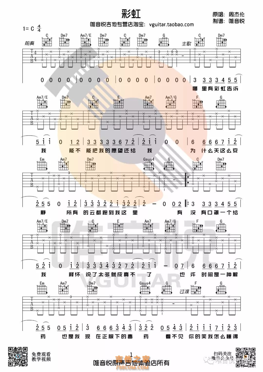吉他之家为您提供:【曲谱分享】周杰伦 彩虹 原版吉他谱 唯音悦制谱 ,查看更多【曲谱分享】周杰伦 彩虹 原版吉他谱 唯音悦制谱 图片谱、C调吉他谱、D调吉他谱、E调吉他谱、F调吉他谱、G调吉他谱、A调吉他谱、B调吉他谱、TXT吉他谱版、GTP吉他谱版、【曲谱分享】周杰伦 彩虹 原版吉他谱 唯音悦制谱 简谱、【曲谱分享】周杰伦 彩虹 原版吉他谱 唯音悦制谱 尤克里里谱、六线谱、五线谱、吉他和弦谱及【曲谱分享】周杰伦 彩虹 原版吉他谱 唯音悦制谱 吉他教学视频,请查看下方"相关阅读"。