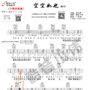 空空如也吉他谱 胡66 G调原版编配 酷音小伟吉他教学